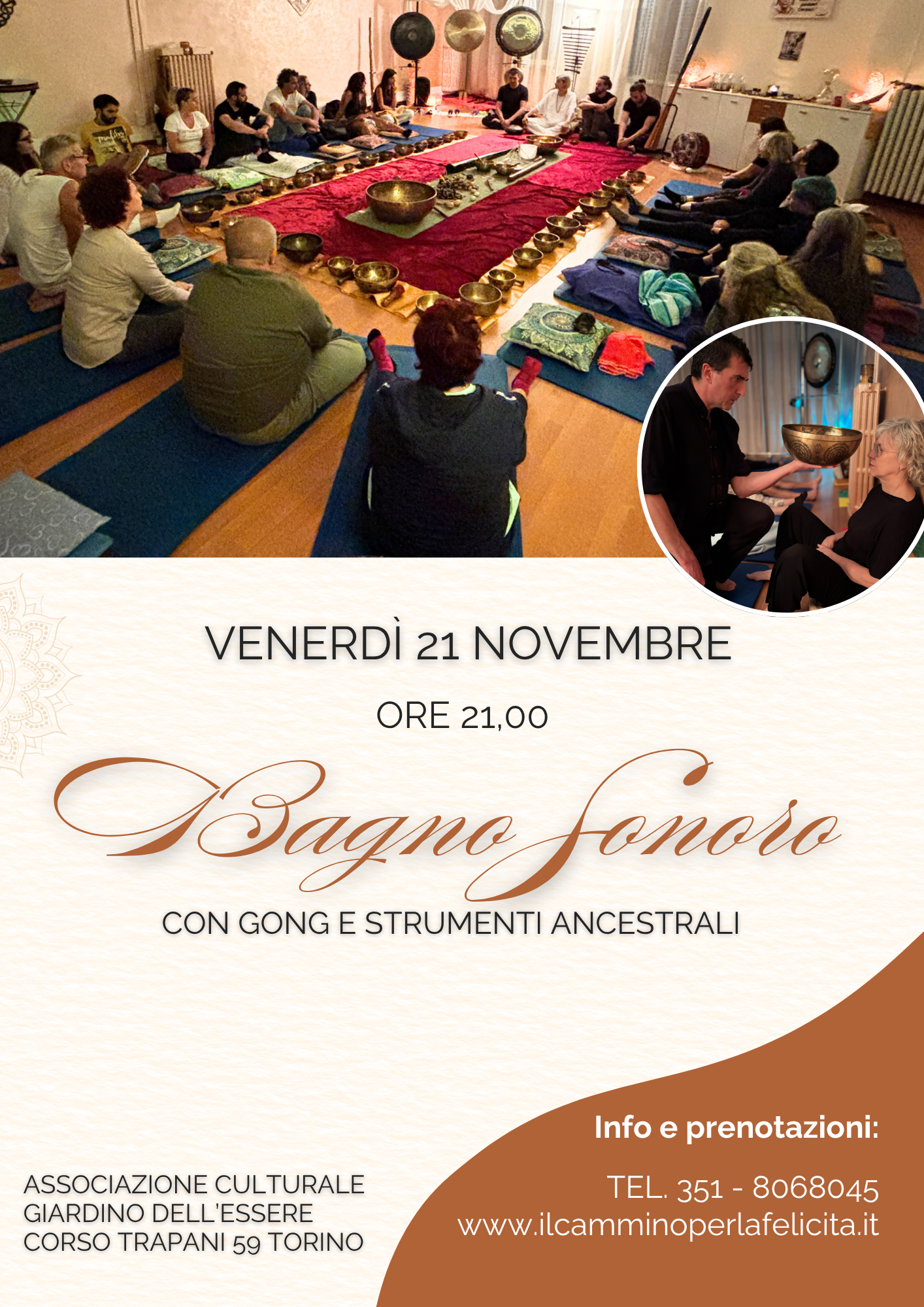 Passa insieme a noi il 21 Novembre e vivi un evento di allineamento corpo, mente e anima attraverso un BAGNO di GONG e CAMPANE TIBETANE