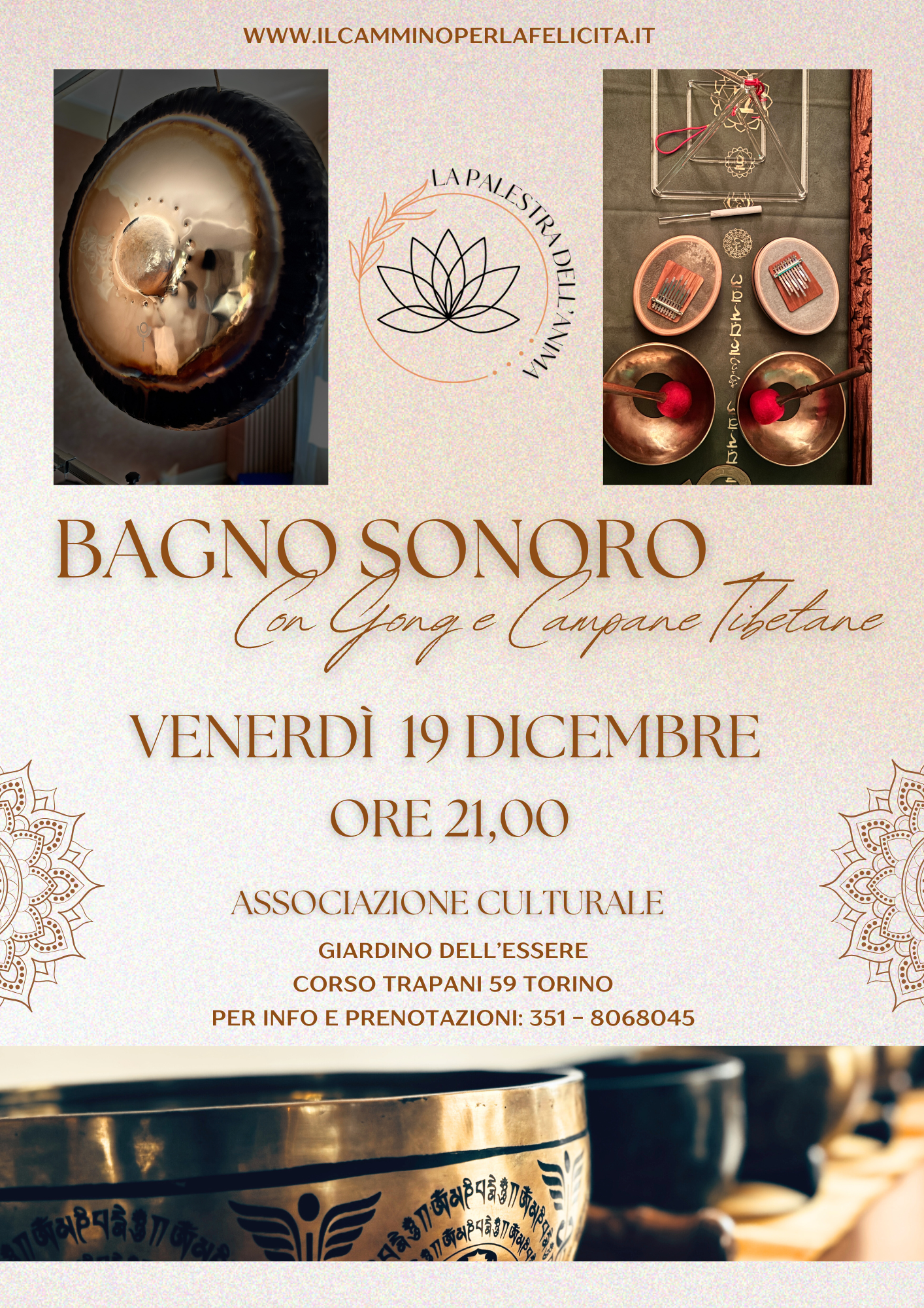 Passa insieme a noi il 19 Dicembre e vivi un evento di allineamento corpo, mente e anima attraverso un BAGNO di GONG e CAMPANE TIBETANE