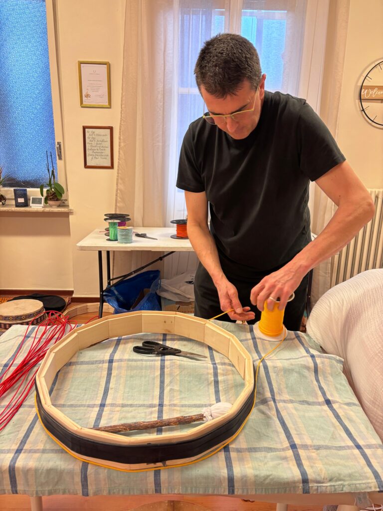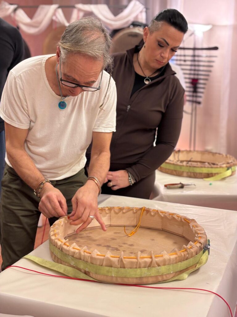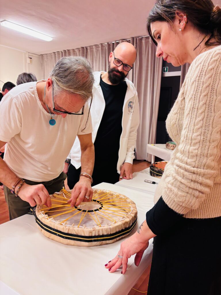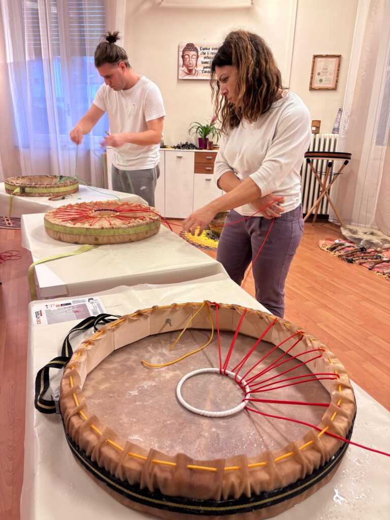 La giornata di domenica dedicata alla costruzione del tamburo sciamanico è stata un’esperienza profonda, intensa, capace di toccare corde antiche dell’anima.