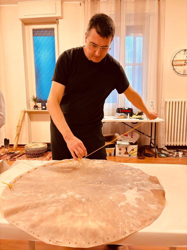 La giornata di domenica dedicata alla costruzione del tamburo sciamanico è stata un’esperienza profonda, intensa, capace di toccare corde antiche dell’anima.