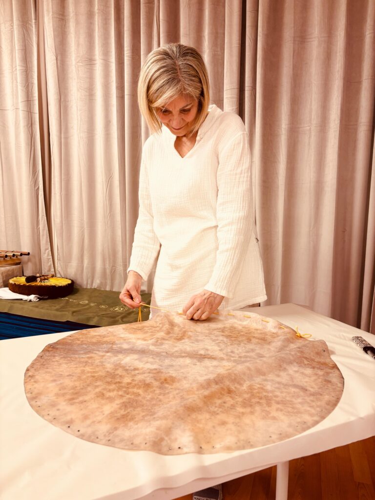 Abbiamo condiviso uno spazio sacro fatto di ascolto, silenzio, presenza e intenzione. La costruzione del tamburo non è stata solo un atto creativo, ma un vero e proprio rito di connessione, un dialogo profondo con gli elementi e con lo spirito del tamburo.